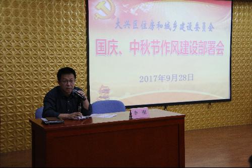 为持之以恒加强国庆、中秋节日期间作风建设,严防“四风”问题反弹,2017年9月28日下午,住建委召开了国庆、中秋节期间作风建设工作部署会,会议由住建委副书记李刚主持,住建委全体干部职工参加了会议。会上,李刚传达学习了《市纪委市监委要求“八个严禁”严防“两节”期间“四风”反弹》和区纪委《关于加强国庆、中秋期间作风建设的通知》通知精神,并对我委两节”期间作风纪律、应急值守工作提出了具体要求。